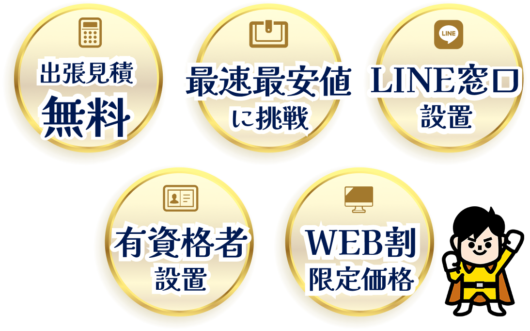 - 弊社は24時間、365日営業しております。お電話はもちろん、メール、LINEでのお問合わせも受け付けております。お急ぎの場合はお電話をいただけますとスムーズにご対応ができます。
